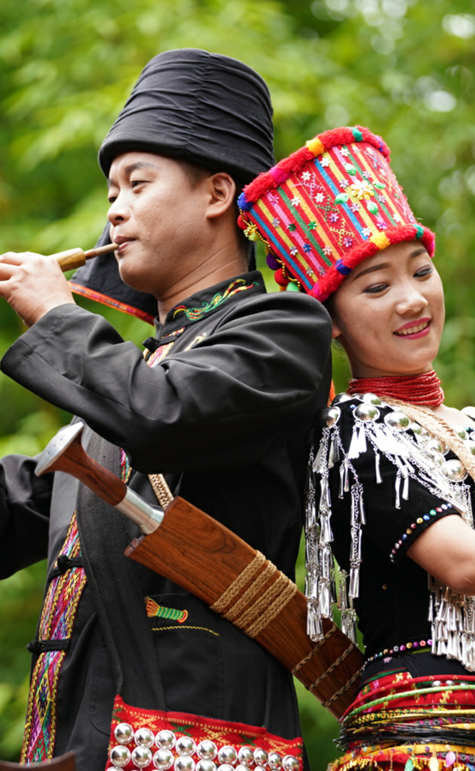拉祜族人口約41萬,主要聚居在思茅、臨滄境內的瀾滄江沿岸地區。拉祜族寨與基諾族寨緊緊毗連,寨內建有拉祜族茅草房、大公房、教堂、牛棚以及葫蘆廣場。位于拉祜族寨中心位置的葫蘆廣場形似一只碩大的葫蘆平面,核心有一組石雕葫蘆。傳說拉祜族的祖先誕生于葫蘆中,因此葫蘆廣場表現了拉祜族的祖先崇拜觀念。漫步拉祜族寨,葫蘆笙悠揚婉轉、口弦聲余音繞梁,表現拉祜族勞動場面的“豐收擺舞”充滿歡騰和激情,展示了拉祜族的民間...